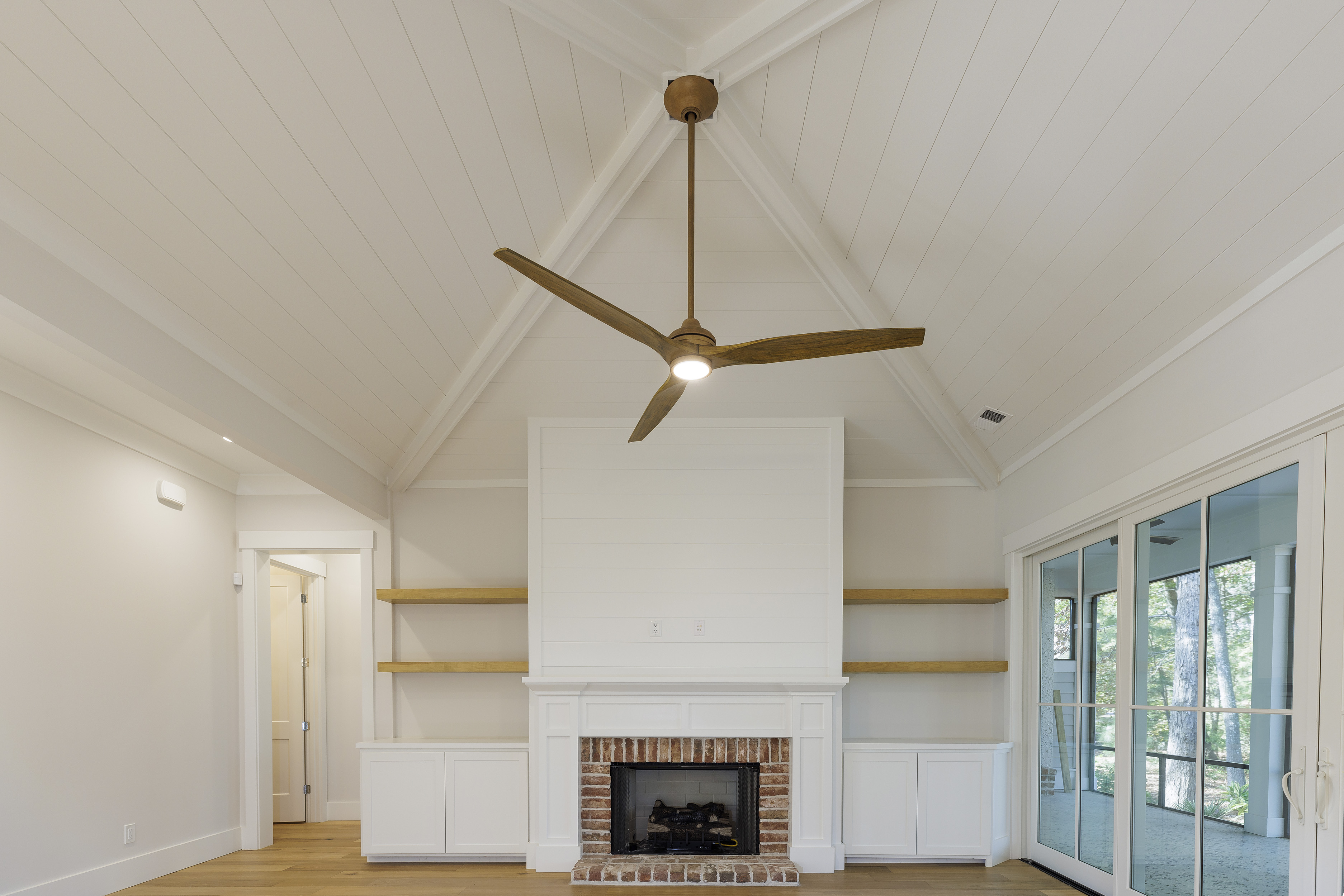 screened porch with fireplace