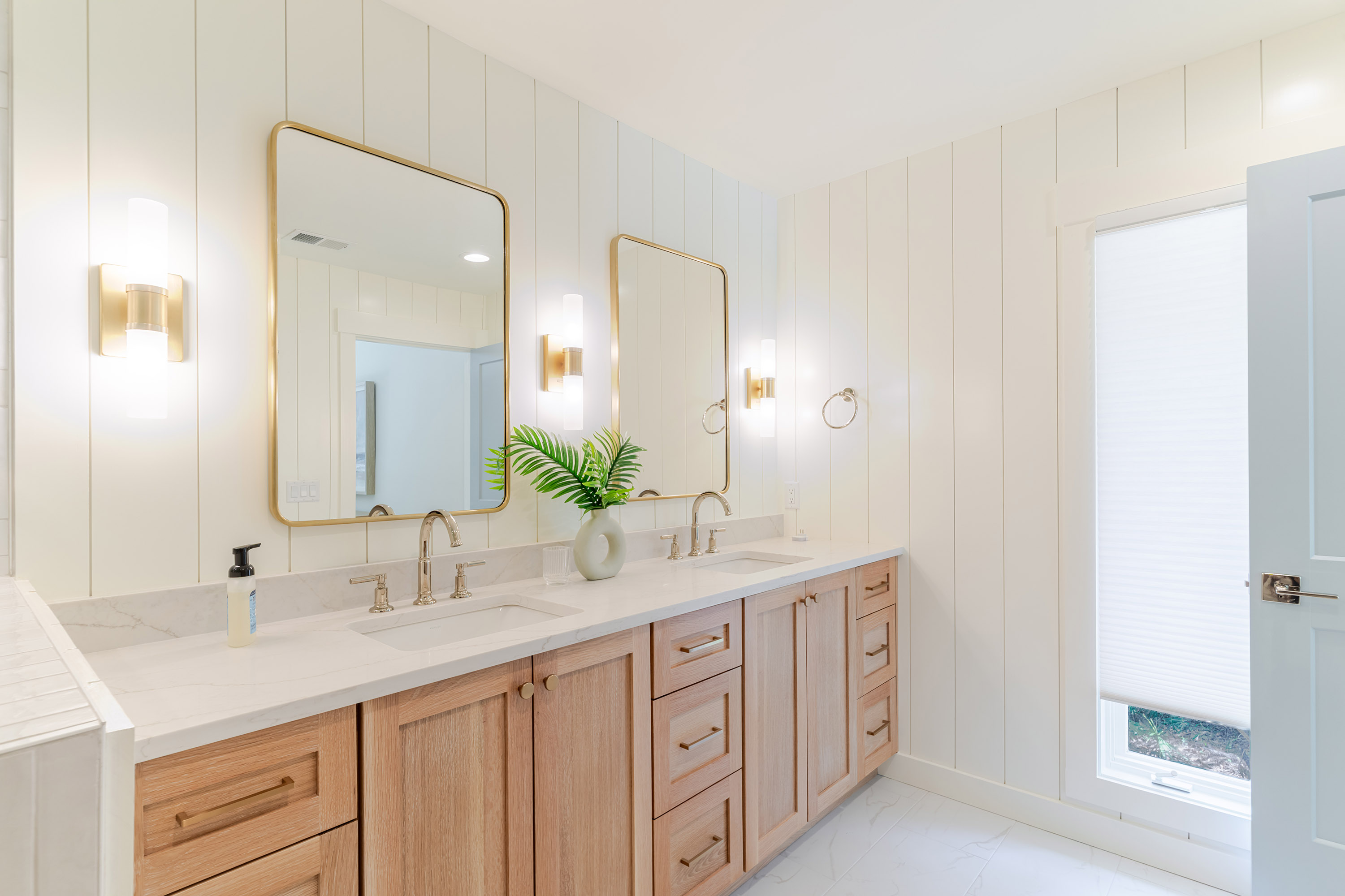 We fully remodeled the interior of this home – from paint to fixtures to shiplap to drywall, giving the dated residence a full-face lift.