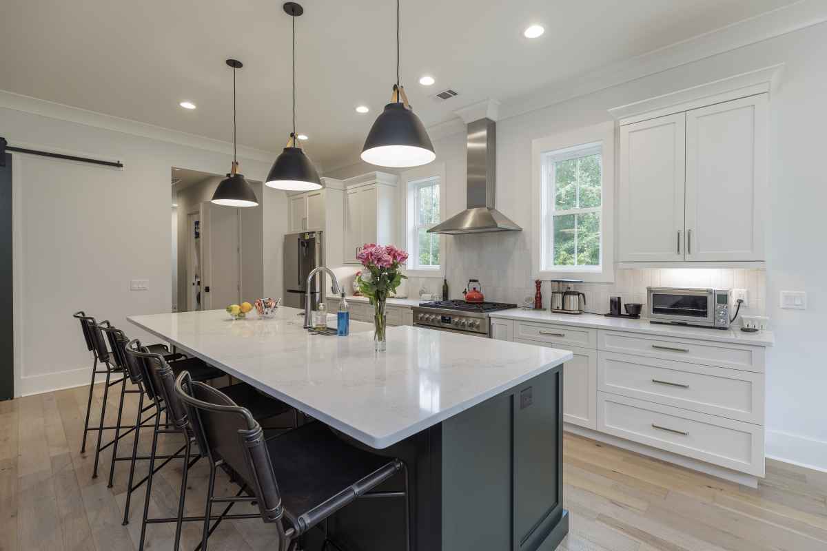 open kitchen with oversized pantry