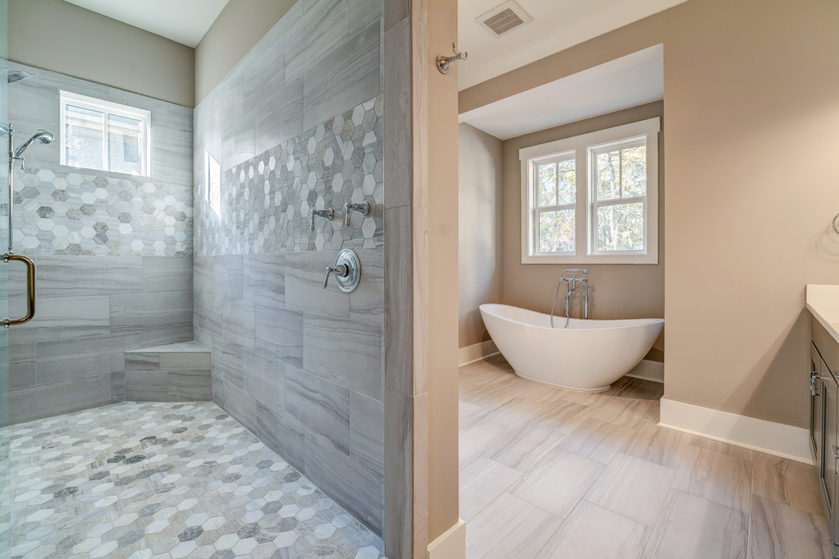 Generous master suite with walk-in closet, oversized shower, and soaker tub