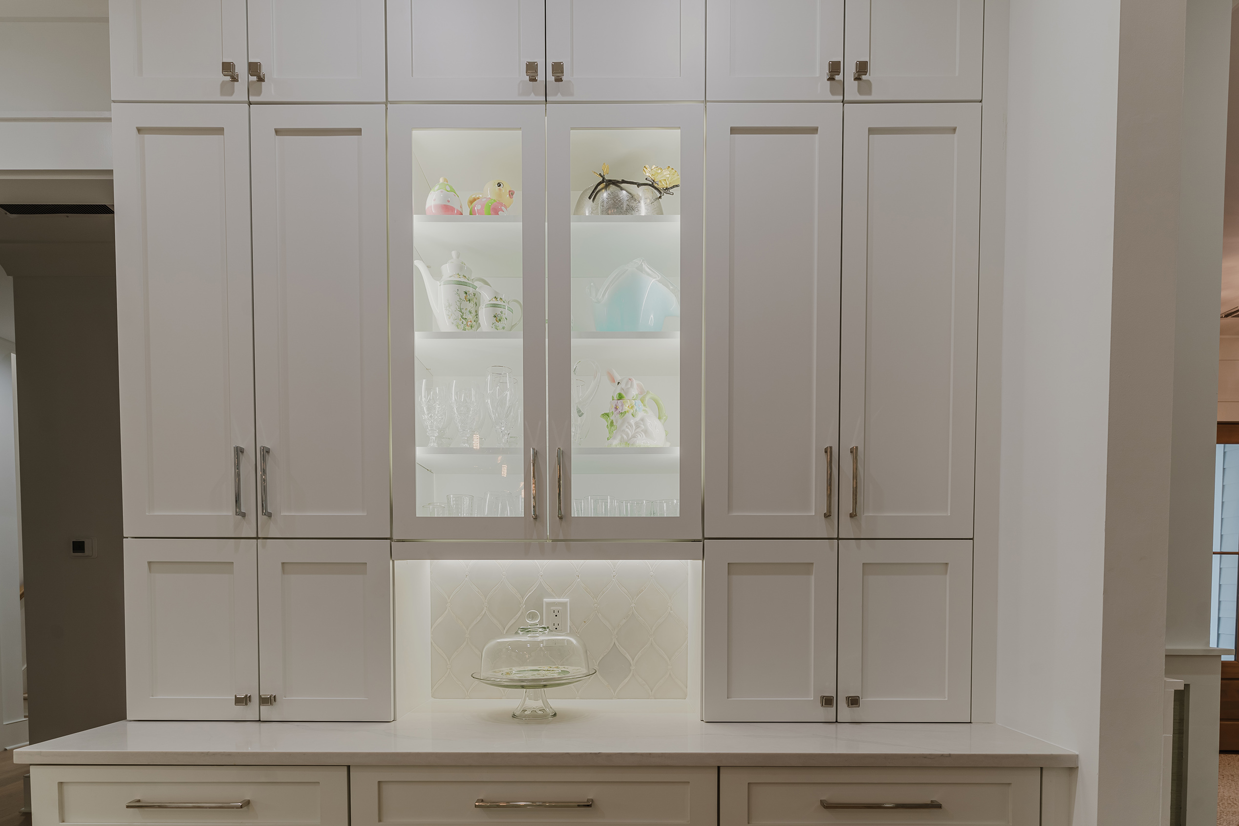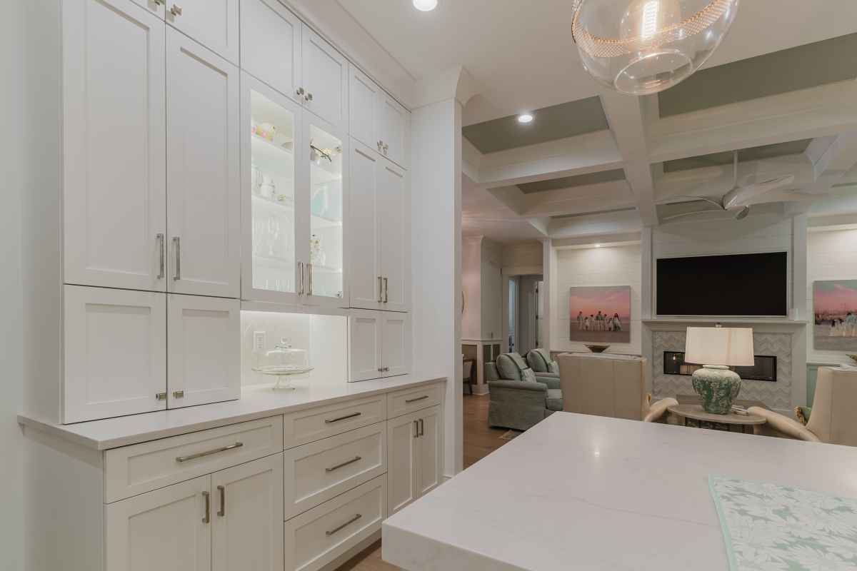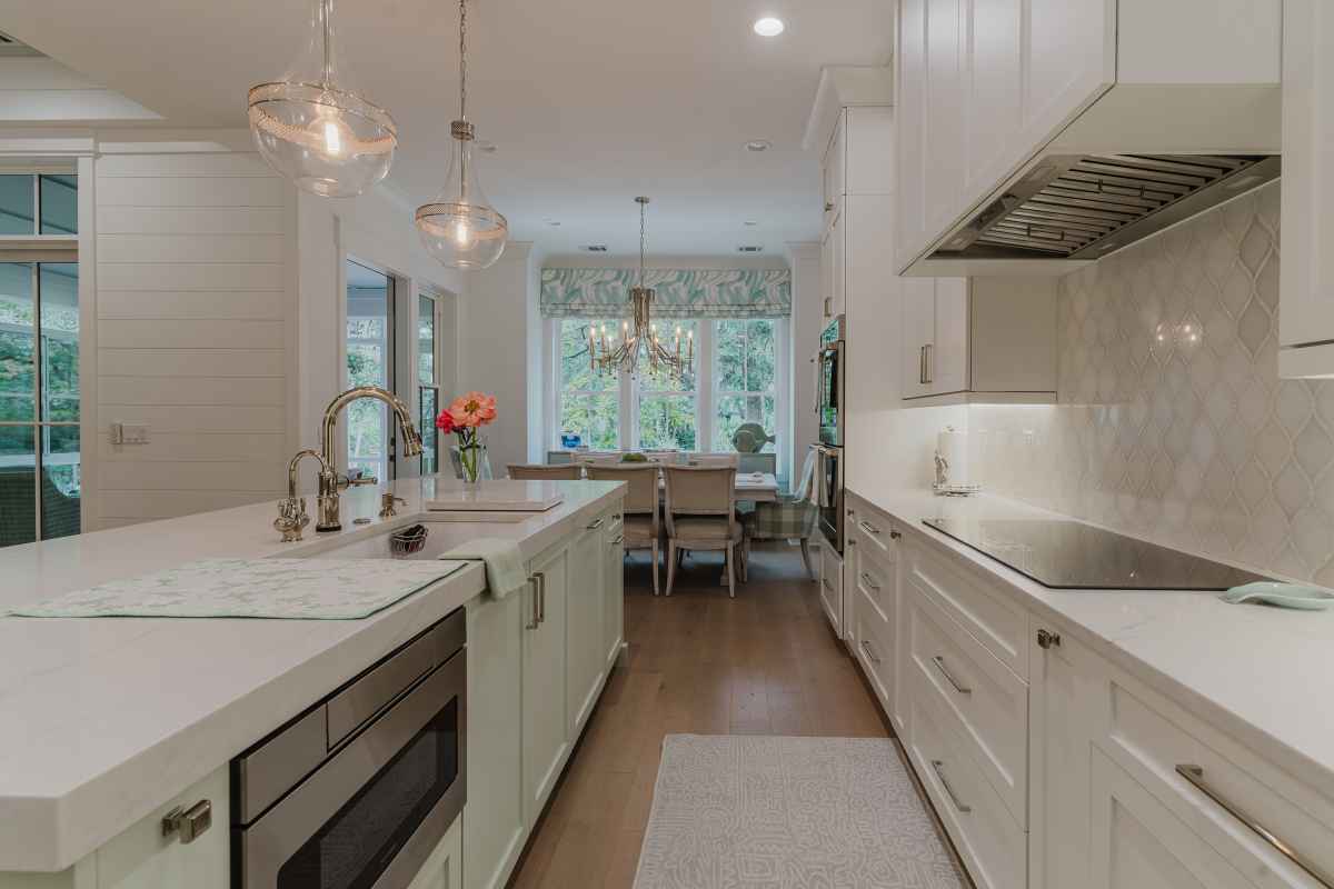 bright open kitchen with walk in pantry